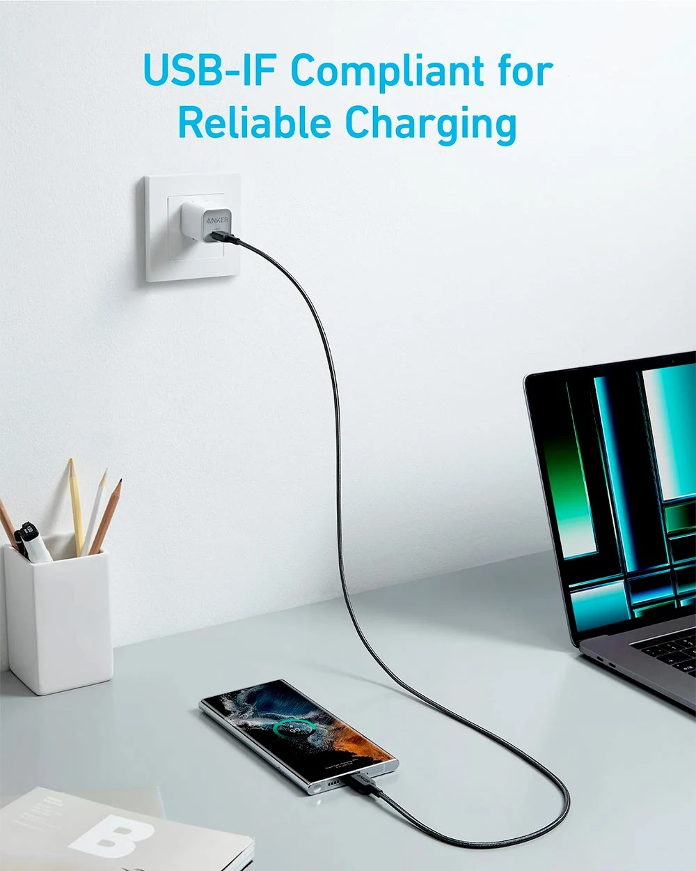 Anker A8060H12 USB-C to USB-C 240W Fast Charging Cable | كابل أنكر A8060H12 6FT تايب سي إلى تايب سي شحن سريع 240W