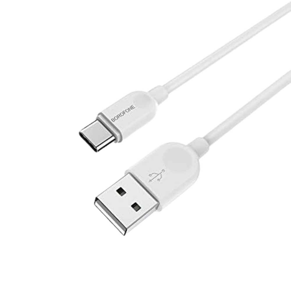 كابل USB-C بطول 2 متر، سطح PVC، موصلات TPE، ونواة من النحاس المطلي بالقصدير، يدعم الشحن حتى 3 أمبير ونقل البيانات.
