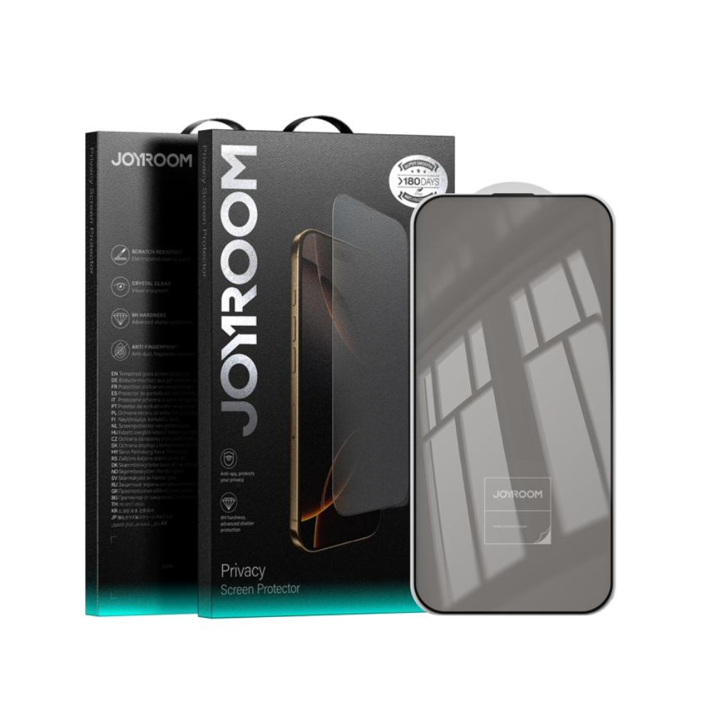 واقي الشاشة من JOYROOM مخصص لهاتف iPhone 17 Pro Max، مصنوع من زجاج مقوّى عالي الجودة بتقنية 2.5D لتغطية كاملة وحواف منحنية أنيقة.